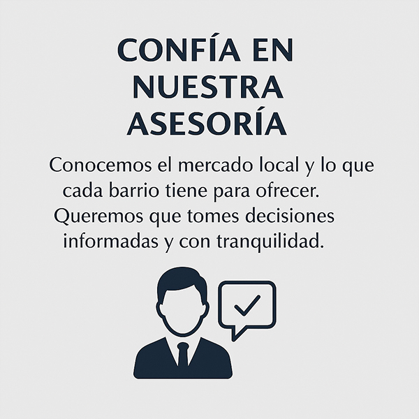 📝 Asesorías Inmobiliarias Tomar decisiones informadas es clave en el mundo inmobiliario. Por eso ofrecemos asesorías personalizadas para resolver dudas legales, evaluar inversiones, revisar contratos y acompañarte en procesos de compra, venta o arriendo. Hablamos tu idioma, comprendemos tus necesidades.